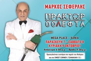 Ο Μάρκος Σεφερλής στο Mega place με την νέα του παράσταση “ΠΡΑΚΤΩΡ 00λεφτά” με 3 διπλές παραστάσεις στις 7 – 8 και 9 Οκτωβρίου ΠΡΟΠΩΛΗΣΗ ΚΑΘΗΜΕΡΙΝΑ ΣΤΑ...
