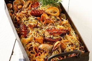 (1 ώρα προετοιμασία, 1 ώρα και 12′ μαγείρεμα. 5′ αναμονή, σύνολο: 2 ώρες και 17′) Υλικά (μερίδες 4- 6): 1 μικρό χταπόδι (καθαρισμένο), 5-6...