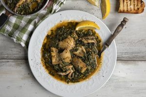 Υλικά: 1 κιλό σουπιές, 1 κιλό σπανάκι, 1 φλιτζάνι παρθένο ελαιόλαδο, 2 κρεµµύδια ξερά ή 5-6 φρέσκα, 1 ποτήρι του κρασιού λευκό κρασί, 1 φλιτζάνι του τσαγιού...