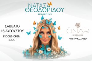 Μια μαγική μουσική βραδιά μας υπόσχεται η κορυφαία λαϊκή ερμηνεύτρια Νατάσα Θεοδωρίδου, που έρχεται στα Χανιά στις 16/08 σε μια μοναδική συναυλία δίπλα στο...
