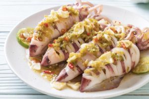 Υλικά για 4 άτομα 8 μέτρια καλαμάρια, καθαρισμένα 1 φλ. ε.π. ελαιόλαδο 1 ξερό κρεμμύδι, ψιλοκομμένο 4 σκελίδες σκόρδου, ψιλοκομμένες 1 πράσινη πιπεριά ...