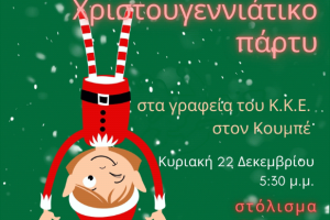 Για 4η χρονιά η Τομεακή Επιτροπή Χανίων του ΚΚΕ διοργανώνει χριστουγεννιάτικη γιορτή για τα παιδιά, την Κυριακή 22 Δεκεμβρίου στις 5.30μ.μ. στα γραφεία του ΚΚΕ...