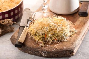 Υλικά (για 40 κομμάτια): 200 γραμμάρια καπνιστή γαλοπούλα κομμένη σε κυβάκια, 500 γραμμάρια κανταΐφι, 350 γραμμάρια κεφαλογραβιέρα τριμμένη, 100 γραμμάρια...