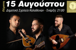 Ο Πολιτιστικός Σύλλογος Καλαθενών διοργανώνει κρητική βραδιά σήμερα Πέμπτη 15 Αυγούστου (9 μ.μ.) με τον Νίκο Χριστουλάκη και το συγκρότημά του, στο Δημοτικό...