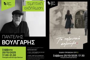Τιμητική εκδήλωση για τον Παντελή Βούλγαρη στο 13ο Φεστιβάλ Κινηματογράφου Χανίων, το Σάββατο 25 Οκτωβρίου: 17.00-19.00: προβολή ταινίας «Το Τελευταίο...