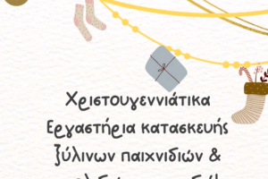 Mε την Αθηνά Δουκάκη και το Χοσέ Ναβάρο. Ελάτε παιδιά να φτιάξουμε σβούρες, βαρκούλες, γιρλάντες και χριστουγεννιάτικα στολίδια από ξύλο. Πέμπτη 28 Δεκεμβρίου...