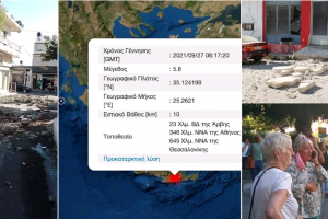 Σεισμός 5,8 Ρίχτερ έγινε αισθητός το πρωί της Δευτέρας στο Ηράκλειο Κρήτης. Ο σεισμός είχε μεγάλη διάρκεια και προκλήθηκε ιδιαίτερη αναστάτωση στους κατοίκους...