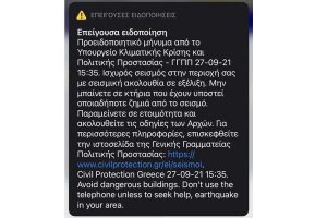 Προειδοποιητικό μήνυμα από το 112 έλαβαν στα κινητά τους τηλέφωνα κάτοικοι της Περιφερειακές Ενότητας Ηρακλείου, το μεσημέρι της Δευτέρας 27 Σεπτεμβρίου...