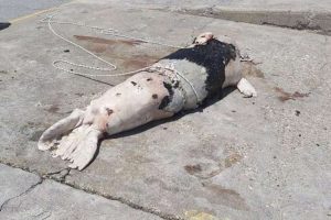 Με ένα άσχημο θέαμα ήρθαν αντιμέτωπες οι υπηρεσίες του Δήμου Αγίου Νικολάου. Μια φώκια μήκους 2 μέτρων και 40 εκατοστών πυροβολημένη στο κεφάλι με σκάγια...