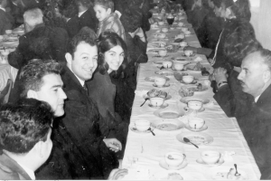 1972: Κοπή βασιλόπιτας στο Ενοριακό Κέντρο Αγίου Σπυρίδωνα Καστελλίου. Από αριστερά: Στέλιος Καρτσωνάκης, Γιάννης Κουκουλάς, Φωτεινή Σεγρεδάκη, Δημήτρης...