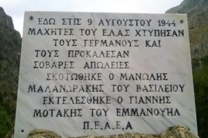 Με την παρουσία αντιστασιακών, φίλων και συγγενών των αγωνιστών, αρκετού κόσμου και με την ευθύνη διοργάνωσης από το παράρτημα Χανίων της ΠΕΑΕΑ – ΔΣΕ...
