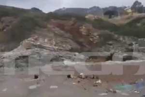 Η θάλασσα ολόκληρη μια λασπωμένη καφέ μάζα. Στην επιφάνεια επιπλέουν σκουπίδια, κομμένα κλαδιά και εξαρτήματα αυτοκινήτων που η θεομηνία παρέσυρε στο πέρασμα...