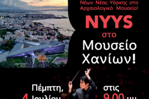 Mουσική παράσταση της Συμφωνικής Ορχήστρας Νέων της Νέας Υόρκης θα πραγματοποιηθεί στο Αρχαιολογικό Μουσείο Χανίων, την Πέμπτη 4 Ιουλίου 2024 στις 9 – 10.15...