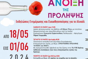 Η 7η Υγειονομική Περιφέρεια Κρήτης, με τη στήριξη της Περιφέρειας Κρήτης και άλλων φορέων , στο πλαίσιο της δράσης «ΑΝΟΙΞΗ ΤΗΣ ΠΡΟΛΗΨΗΣ – Εκδηλώσεις Ενημέρωσης...