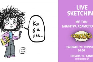 Το Σάββατο 20 Απριλίου, στις 20.00 θα φιλοξενηθεί η δημιουργός κόμικ από την Αθήνα, Δήμητρα Αδαμοπούλου, για μια Live-Sketching βραδιά. Η Δήμητρα θα σχεδιάζει...