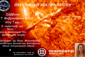 Ο Σύλλογος Φίλων Αστρονομίας Κρήτης και η Περιφέρεια Κρήτης – Περιφερειακή Ενότητα Χανίων διοργανώνουν Εκδήλωση – Ομιλία της Δρ. Όλγας Μαλανδράκη...