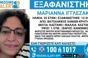 Εδώ και 11 ημέρες αγνοείται η 32χρονη Μαριάννα Ιγγλεζάκη, τα ίχνη της οποίας χάθηκαν από τις 12 Αυγούστου, από τον Βατόλακκο Χανίων με την αγωνία να...