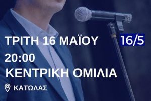 Φίλες και Φίλοι, αγαπητοί συμπολίτες μου, σας καλώ όλους την Τετάρτη 17 Μαΐου και ώρα 18:00 στο καφέ Κήπος στο κέντρο της πόλης μας, στην κεντρική πολιτική μου...