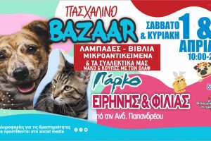 Ο Φιλοζωικός Σύλλογος Χανίων «Η προστασία των ζώων» διοργανώνουν πασχαλινό bazaar στο Πάρκο Ειρήνης και Φιλίας το Σάββατο 1 και την Κυριακή 2 Απριλίου από τις...