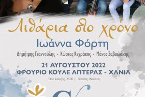 Το «Φεστιβάλ Κρήτης» που διοργανώνεται από την Περιφέρεια Κρήτης, συνεχίζεται με την συναυλία “Λιθάρια στο χρόνο” με την Ιωάννα Φόρτη. Η συναυλία θα δοθεί...