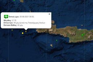 Σεισμική δόνηση 3,7 Ρίχτερ, έγινε αισθητή στην Παλαιόχωρα Χανίων, το πρωί της Τρίτης και πιο συγκεκριμένα στις 08:00. Ο σεισμός είχε εστιακό βάθος 30χλμ με...