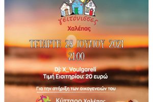 Την Τετάρτη 28 Ιουλίου και ώρα 21:00 θα πραγματοποιηθεί εκδήλωση στη «Λιμνούπολη» για την στήριξη των οικογενειών του «Κυττάρου» Χαλέπας. Η dj X-Voulgareli θα...