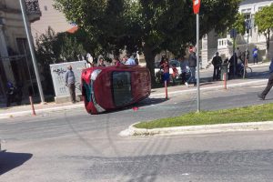 Αναστάτωση προκλήθηκε πριν από λίγο στην πλατεία Δικαστηρίων, όταν αυτοκίνητο ξέφυγε από τον έλεγχο της οδηγού του και τούμπαρε. Οι ακριβείς συνθήκες του...