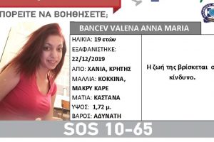 Εξαφανίστηκε ενήλικη από την περιοχή των Χανίων. Συγκεκριμένα πρόκειται για την 19χρονη Άννα Μαρία Βαλένα Μπλάνσεβ, που εξαφανίστηκε στις 22 Δεκεμβρίου, από τα...