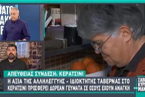 Ιδιοκτήτης Ταβέρνας στο Κερατσίνι “Ο Κρητικός” προσφέρει δωρεάν γεύματα σε όσους έχουν ανάγκη, τώρα που η χώρα μας βάλλεται από τον κορωνοϊό. Η αξία της...