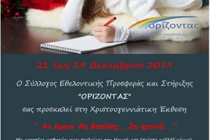 Ο Σύλλογος Εθελοντικής Προσφοράς και Στήριξης ΟΡΙΖΟΝΤΑΣ ανοίγει για 6η συνεχή χρονιά τις πόρτες της χριστουγεννιάτικης εορταγοράς του στα Κουνουπιδιανά...