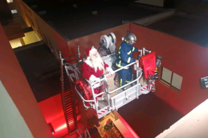 Με γερανοφόρο όχημα και την βοήθεια της Πυροσβεστικής Υπηρεσίας Χανίων ο Αγιος Βασίλης έκανε μια ξεχωριστή επίσκεψη στα παιδιά που νοσηλεύονται στο νοσοκομείο...