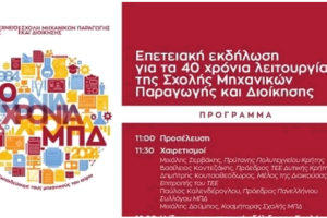 Η Σχολή Μηχανικών Παραγωγής και Διοίκησης του Πολυτεχνείου Κρήτης συμπληρώνει 40 χρόνια λειτουργίας. Η Σχολή ιδρύθηκε ως Τμήμα το 1983 και δέχθηκε για πρώτη...
