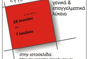 Ξεκίνησαν στις 28 Ιουνίου και ολοκληρώνονται στις 7 Ιουλίου 2023 και ώρα 23:59 οι ηλεκτρονικές αιτήσεις εγγραφών/μετεγγραφών μαθητών /-τριών σε ΕΠΑ.Λ. και ΓΕ...