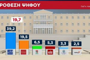 Προβάδισμα της Νέας Δημοκρατίας σε ποσοστό 19,7% καταγράφει η δημοσκόπηση που πραγματοποιήθηκε από την εταιρεία Marc για λογαριασμό του κεντρικού δελτίου του...