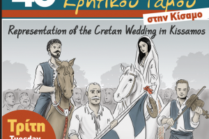 Η κορυφαία καλοκαιρινή εκδήλωση της Κισάμου θα πραγματοποιηθεί σήμερα Τρίτη 20 Αυγούστου. Ο λόγος για την 48η Αναπαράστασή του Κρητικού Γάμου που μαγνητίζει...