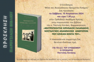 Ο Δήμος Πλατανιά, η Ορθόδοξος Ακαδημία Κρήτης και οι Εκδόσεις «Πυξίδα της Πόλης» σας προσκαλούν την Δευτέρα 29 Ιουλίου 2024 στις 7:30 μμ στην Ορθόδοξο Ακαδημία...