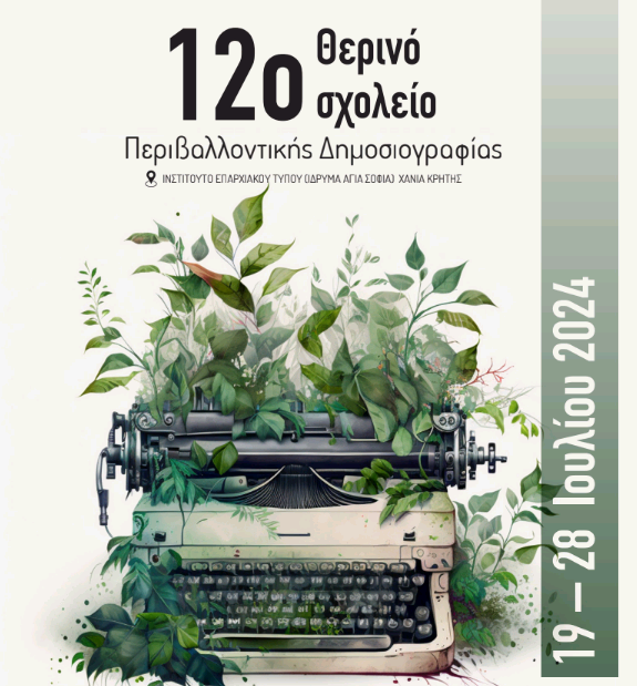 Το 12ο Θερινό Σχολείο Περιβαλλοντικής Δημοσιογραφίας θα πραγματοποιηθεί στα Χανιά, στις εγκαταστάσεις του Ινστιτούτου Επαρχιακού Τύπου (Ίδρυμα Αγία Σοφία) στους Αγίους Πάντες Αποκορώνου, από τις 19 έως τις 28 Ιουλίου 2024.