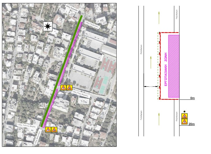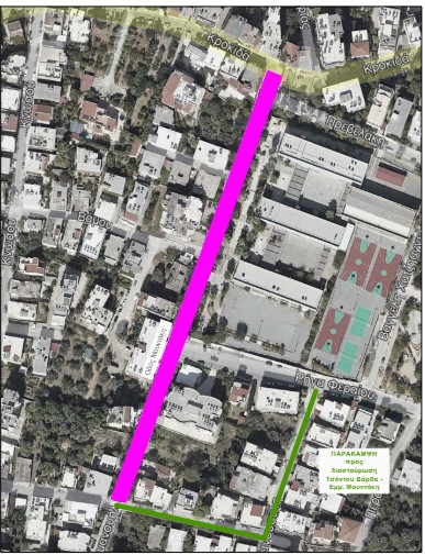 • Ρήγα Φεραίου, από τη συμβολή με τη Μανούσου Μανουσέλη έως τη συμβολή της με την Εμμανουήλ Μουντάκη.