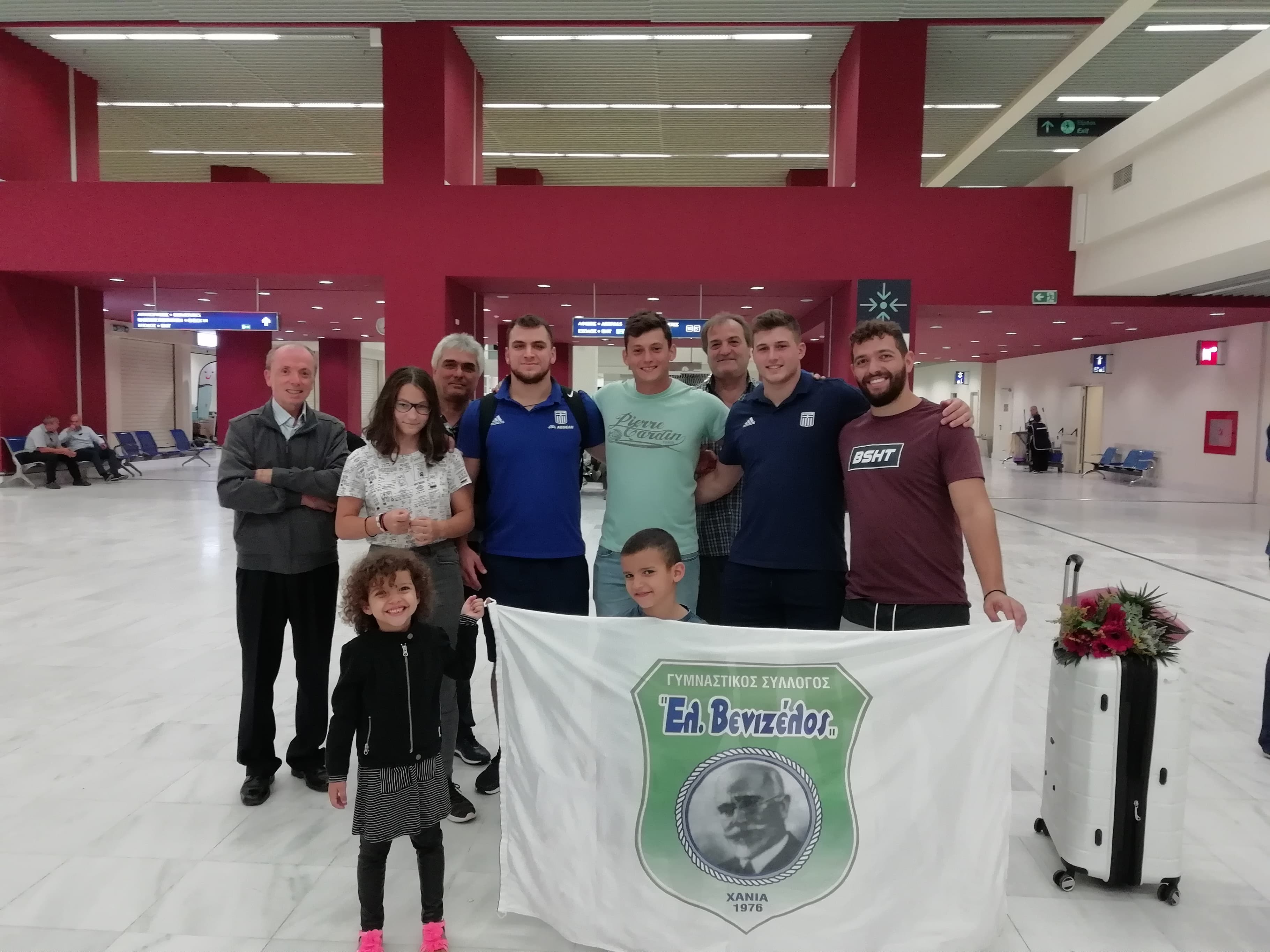 Γεμάτοι πολύτιμες εμπειρίες και αναμνήσεις επέστρεψαν αργά το απόγευμα στο αεροδρόμιο Χανίων ο Μιχάλης Αναστασάκης και ο Χρήστος Φραντζεσκάκης από το Παγκόσμιο Πρωτάθλημα που διεξήχθη στη Ντόχα του Κατάρ όπου τους υποδέχθηκαν μέλη της Διοίκησης του Συλλόγου, των οικογενειών τους και φίλοι τους.