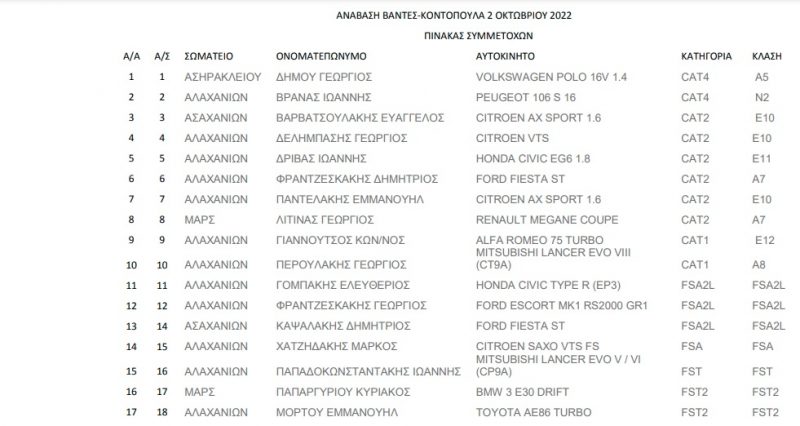 ΠΙΝΑΚΑΣ ΣΥΜΜΕΤΟΧΩΝ