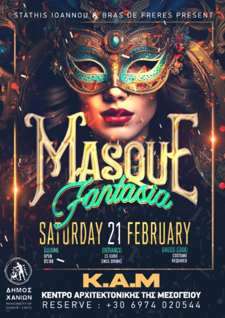 Ο Δήμος Χανίων σας προσκαλεί να ζήσετε τη μαγεία του καρναβαλιού στο Masque Fantasia, το πιο εντυπωσιακό αποκριάτικο πάρτυ της χρονιάς!