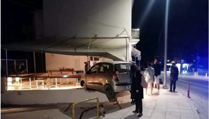 ΙΧ αυτοκίνητο που οδηγούσε μία 18χρονη, εξετράπη κάτω από αδιευκρίνιστες συνθήκες, από την πορεία του, και ακολουθώντας τρελή πορεία, “καβάλησε” το τοιχίο μίας κρεπερί και σταμάτησε σε απόσταση αναπνοής από την είσοδο του καταστήματος!