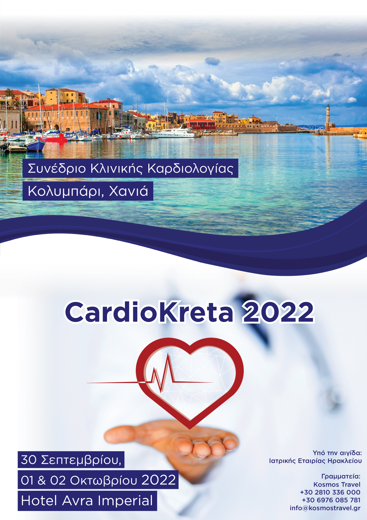 Με ιδιαίτερη χαρά η Καρδιολογική κλινική του Πανεπιστημιακού Γενικού Νοσοκομείου, Ηρακλείου Κρήτης, διοργανώνει το Cardio Kreta 2022, στο Κολυμπάρι Χανίων.