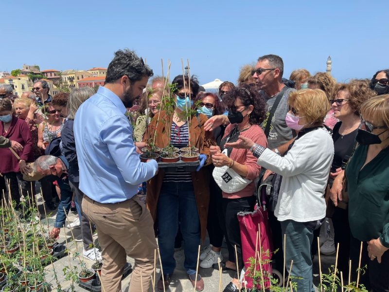 Με σύνθημα «Να μυρίσουν της γειτονιάς τα γιασεμιά», ο Δήμος Χανίων, σε συνεργασία με το Δημοτικό Λιμενικό Ταμείο Χανίων και τη Δ.Ε.ΔΙ.Σ.Α. ΑΕ, διένειμε περισσότερα από 2.500 γλαστράκια με γιασεμί, σε πολίτες που συγκεντρώθηκαν από νωρίς στην πλατεία για να παραλάβουν τα καλλωπιστικά φυτά.