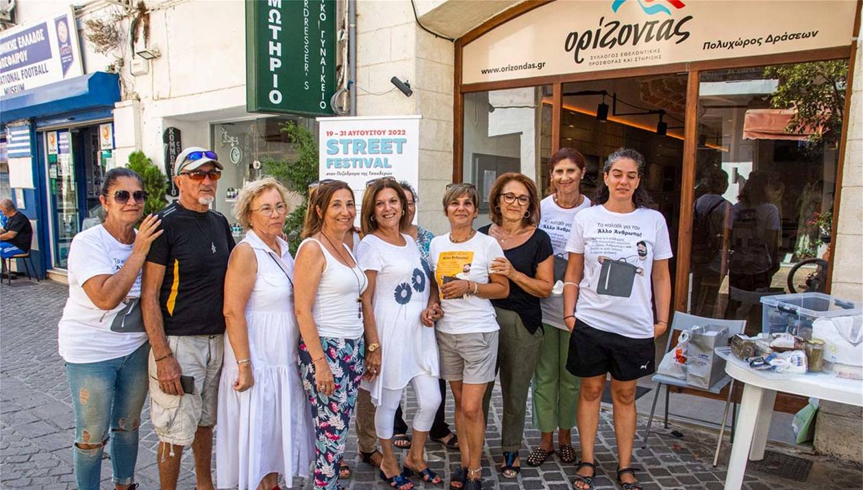 Το 1ο Street Festival από τον Σύλλογο Εθελοντικής Προσφοράς και Στήριξης Παιδιών και Ενηλίκων με καρκίνο «Ορίζοντας» και από τον Δήμο Χανίων είναι γεγονός! Ο πεζόδρομος της οδού Τσουδερών μέχρι και τις 31 Αυγούστου μεταμορφώνεται σε έναν ανοιχτό χώρο ποικίλων δράσεων, με πρωταρχικό σκοπό την ευαισθητοποίηση και ενημέρωση του κόσμου πάνω στις δράσεις του «Ορίζοντα». Ήδη οι πρώτες εκδηλώσεις έδωσαν χρώμα στον πολυσύχναστο δρόμο του εμπορικού κέντρου, με τους διοργανωτές να απευθύνουν χθες κάλεσμα στον κόσμο να αγκαλιάσει και τις δράσεις των επόμενων ημερών.