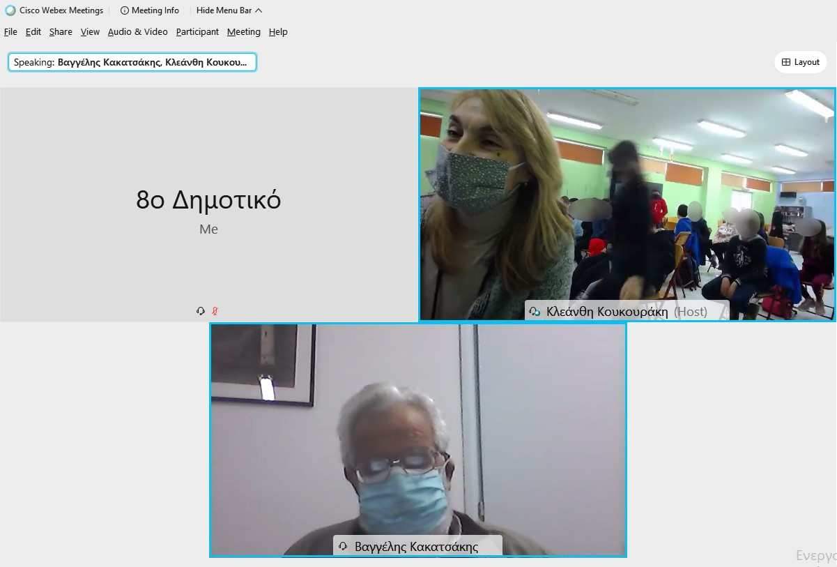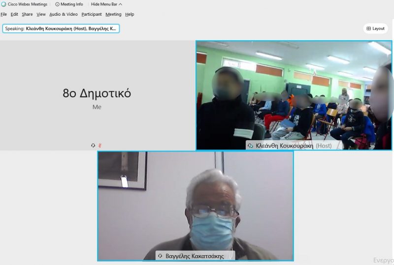 Την Πέμπτη 21 Ιανουαρίου 2021 οι μαθητές του Στ΄1 του 8oυ Δημοτικού Σχολείου Χανίων και η δασκάλα τους κ. Κλεάνθη Κουκουράκη συναντήθηκαν διαδικτυακά με το γνωστό δάσκαλο, λογοτέχνη και ποιητή Βαγγέλη Κακατσάκη με αφορμή την έκδοση της νέας ποιητικής του συλλογής, ‘’Τα Χελιδόνια του Μοναχού’’. Η δράση αυτή έγινε στα πλαίσια των γενικότερων δράσεων που υλοποιεί το σχολείο και στοχεύει στην ολόπλευρη καλλιέργεια των μαθητών, στη μετάδοση αξιών και στην καλλιέργεια του πολιτισμού.