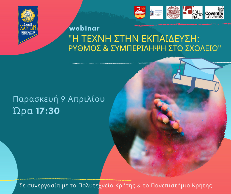 Με αφορμή την Παγκόσμια Ημέρα Αυτισμού στις 2 Απριλίου, ο Δήμος Χανίων διοργανώνει ένα διαδικτυακό σεμινάριο – webinar με τίτλο: “Η Τέχνη στην Εκπαίδευση: Ρυθμός και Συμπερίληψη στο σχολείο”.