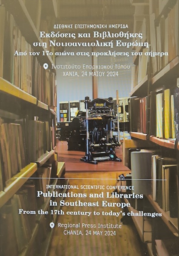 Την Παρασκευή 24 Μαϊου 2024, το Μουσείο Τυπογραφίας Γιάννη και Ελένης Γαρεδάκη διοργανώνει Διεθνή Επιστημονική Ημερίδα, με τίτλο “Εκδόσεις & Βιβλιοθήκες στη Νοτιοανατολική Ευρώπη: Από τον 17ο αιώνα στις προκλήσεις του σήμερα”, στο Ινστιτούτο Επαρχιακού Τύπου. Πρόκειται για συνδιοργάνωση του Μουσείου Τυπογραφίας, με το ΕΚΠΑ και την Adligat (Σερβία) Εταιρία Πολιτισμού και Μουσείο Βιβλίου.