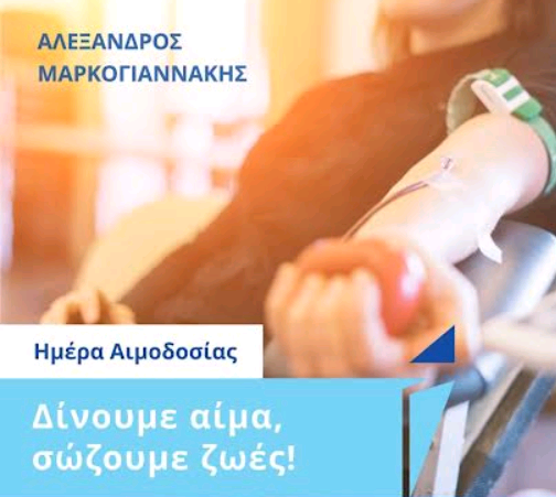 «Το αίμα είναι καθημερινή ανάγκη για κρίσιμες ιατρικές πράξεις που σώζουν ζωές, όπως για παράδειγμα από τα τροχαία ατυχήματα που δυστυχώς στην Κρήτη είναι συνεχή. Η αιμοδοσία είναι ο ασφαλέστερος τρόπος για να δείξουμε έμπρακτα την αλληλεγγύη μας στον συνάνθρωπο. Μέσα σε λίγα λεπτά μπορούμε να κάνουμε τη διαφορά, είναι – κυριολεκτικά – στο χέρι μας. Η εθελοντική αιμοδοσία δεν είναι απλώς μήνυμα αλληλεγγύης, είναι έμπρακτη εκδήλωση του ενδιαφέροντός μας για τον συνάνθρωπο, με σωτήρια αποτελέσματα για τη την υγεία και τη ζωή του» είναι η προτροπή του Αλέξανδρου Μαρκογιαννάκη προς όποιον και όποια επιθυμεί να λάβει μέρος στην εθελοντική αιμοδοσία στις 26 Ιουλίου