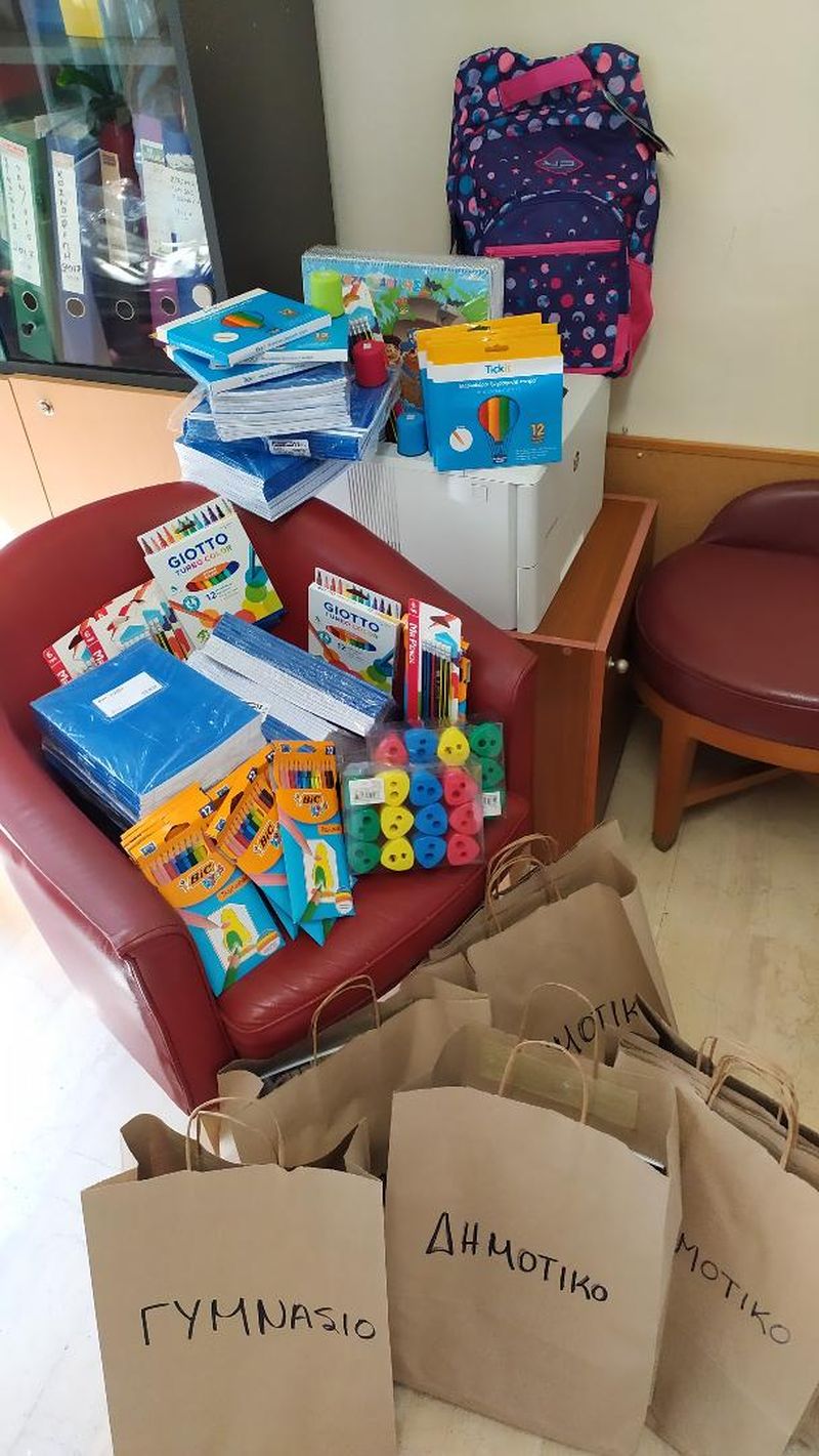 Η προμήθεια των σχολικών υλοποιήθηκε με δαπάνη του Τμήματος Κοινωνικής Πολιτικής, ενώ αρωγοί σε αυτή την προσπάθεια ήταν τα S/M SYN.KA και Σκλαβενίτης.